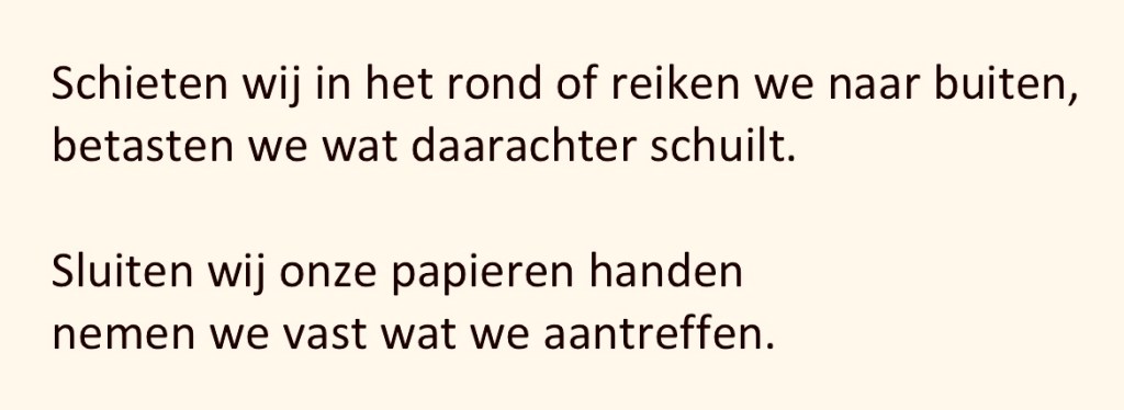 [De uitdrukking Op de schouders van reuzen staan is het beroemdst in de vorm: If I have seen further, it is by standing on the shoulders of giants, vaak (ten onrechte) toegeschreven aan Isaac Newton. In de poëzie is het van toepassing omdat elke generatie steeds verder bouwt aan wat onze voorgangers al oprichtten: we kunnen dus niet anders dan hun oeuvre omarmen: het is immers deel van ons.]